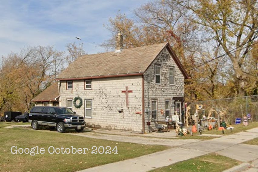 One day back in 2024 I was milling around the lakeshore area - those small cities that dot the shore of Lake Michigan in central eastern Wisconsin - exploring corners I hadn’t yet peeked into. As I walked through an old residential neighborhood I turned down a dead end where one side of the street was fenced off with stacks of construction materials behind it. I was really wrapped up in the geometry of the building site and didn’t even glance across the street until I reached the end of the road.