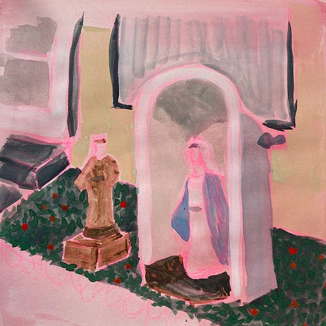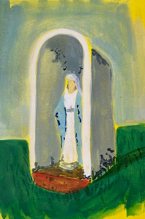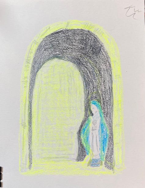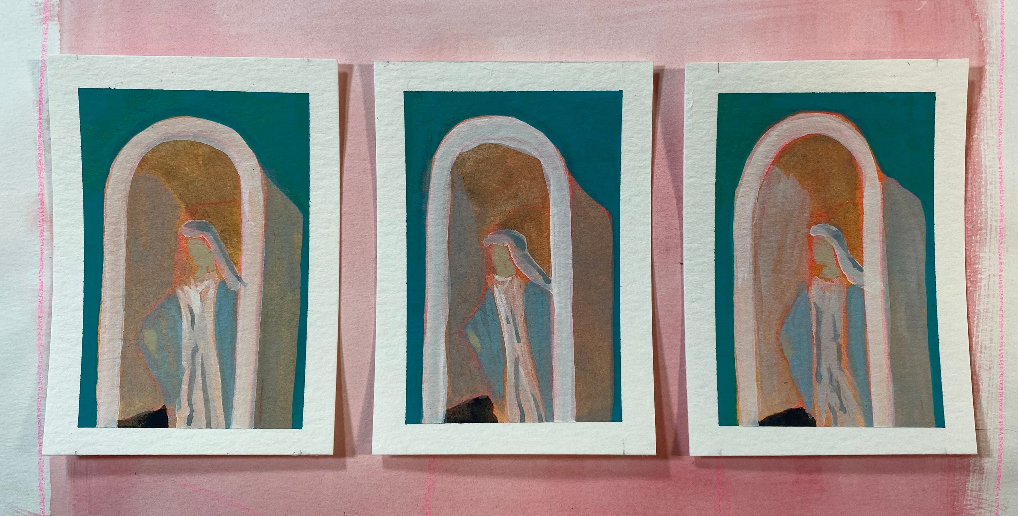 A while back I did a quick ugly sketch of a Virgin Mary in a tub. The idea didn’t quite stick at the time, but I’ve circled back to it and started practicing again.